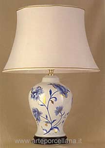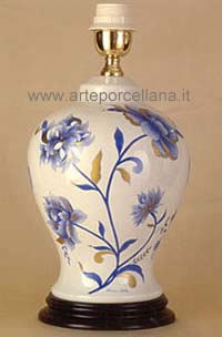 Lampada con tralci di fiori in stile orientale e decorati in monocromo e oro zecchino